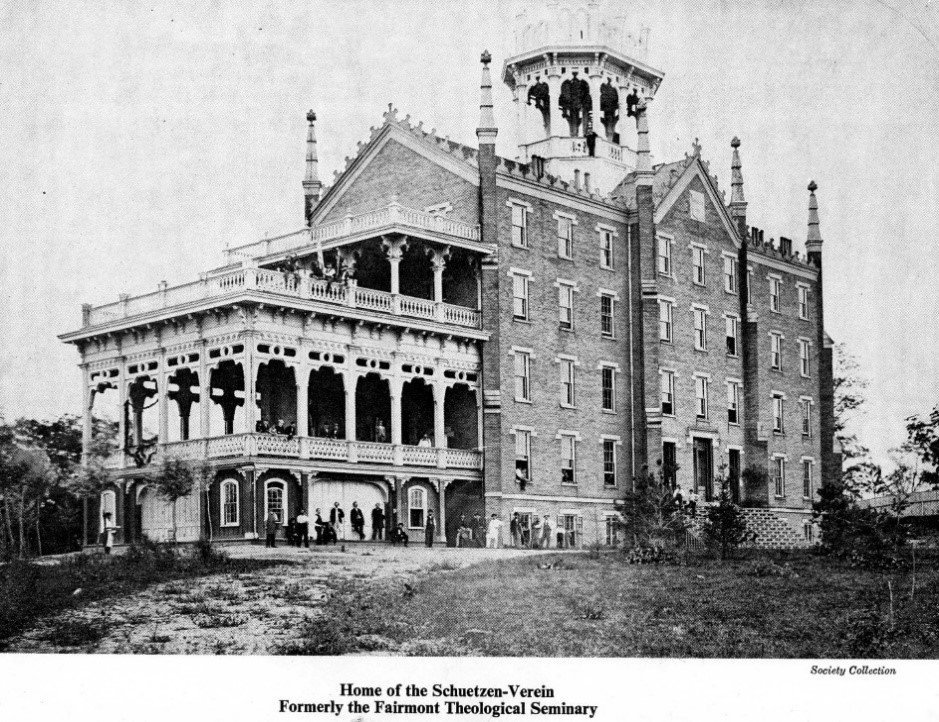 With such an influx of German immigrants to the Greater Cincinnati region in the mid-1800s, it was only natural that a Schützenverein (Rifleman's, or Shooter's Club) and accompanying Schützenfest would be started in a matter of time. On July 1, 1866, a group of Civil War veterans, mostly German immigrants, founded the Cincinnati Schützenverein. This group purchased the building and grounds of the Fairmount Theological Seminary that were situated on a hill in the Fairmount area of Cincinnati, naming the area Schützen Park. The organization held its first Schützenfest in the park that same month, which was the first one to take place in Cincinnati. The hill on which Schützen Park was situated eventually became known as "Schützenbuckel Hill". The Schützenverein held all its festivals and social events at this park, and by 1868, the Verein had over 250 members. Many of the members were from the 9th Ohio Infantry Regiment, as well as other Civil War regiments; many were also prominent German brewers, such as Christian Moerlein, Conrad Windisch, and Gottlieb Muhlhauser.